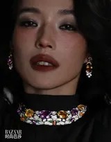 从影多年,舒淇的时尚进化史几乎同步于她的成长轨迹。早年她以清新脱俗的形象出道,逐渐蜕变为如今气场全开的时尚女王。然而,无论造型如何变幻,她那标志性的慵懒卷发、迷离眼神和淡然微笑始终未变——这些细节构成了她独特的“舒淇式”美学符号。在本次芭莎九月刊中,这套红色拖地长裙造型便极具代表性:烈焰红唇与浓郁红色长裙相得益彰,她只需一个侧身,便释放出无可抵挡的霸气女王风范。这不仅是服装的成功,更是个人气质对时尚的绝对主导。